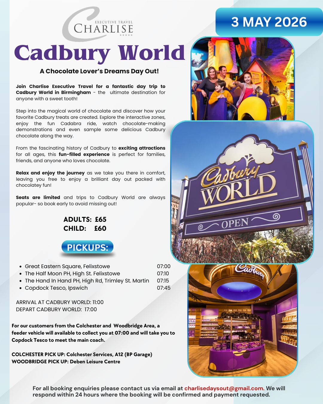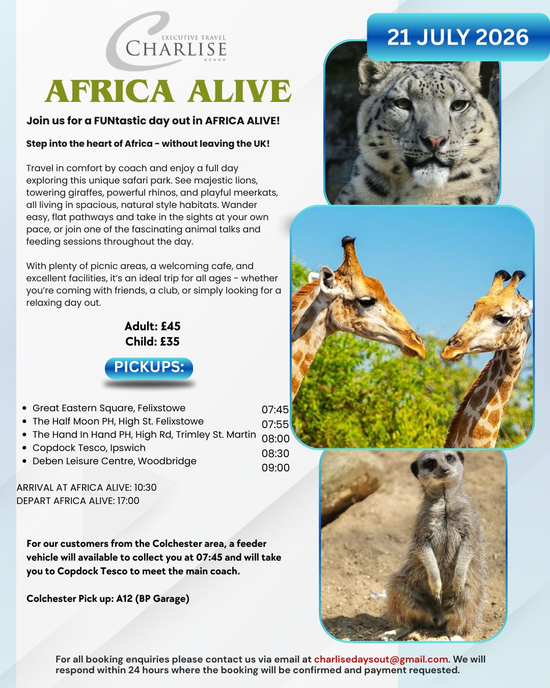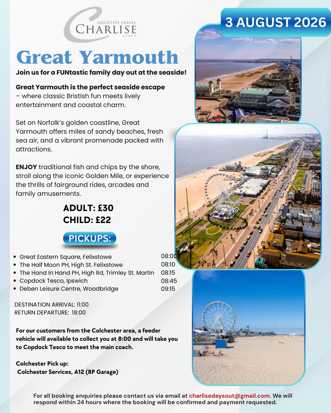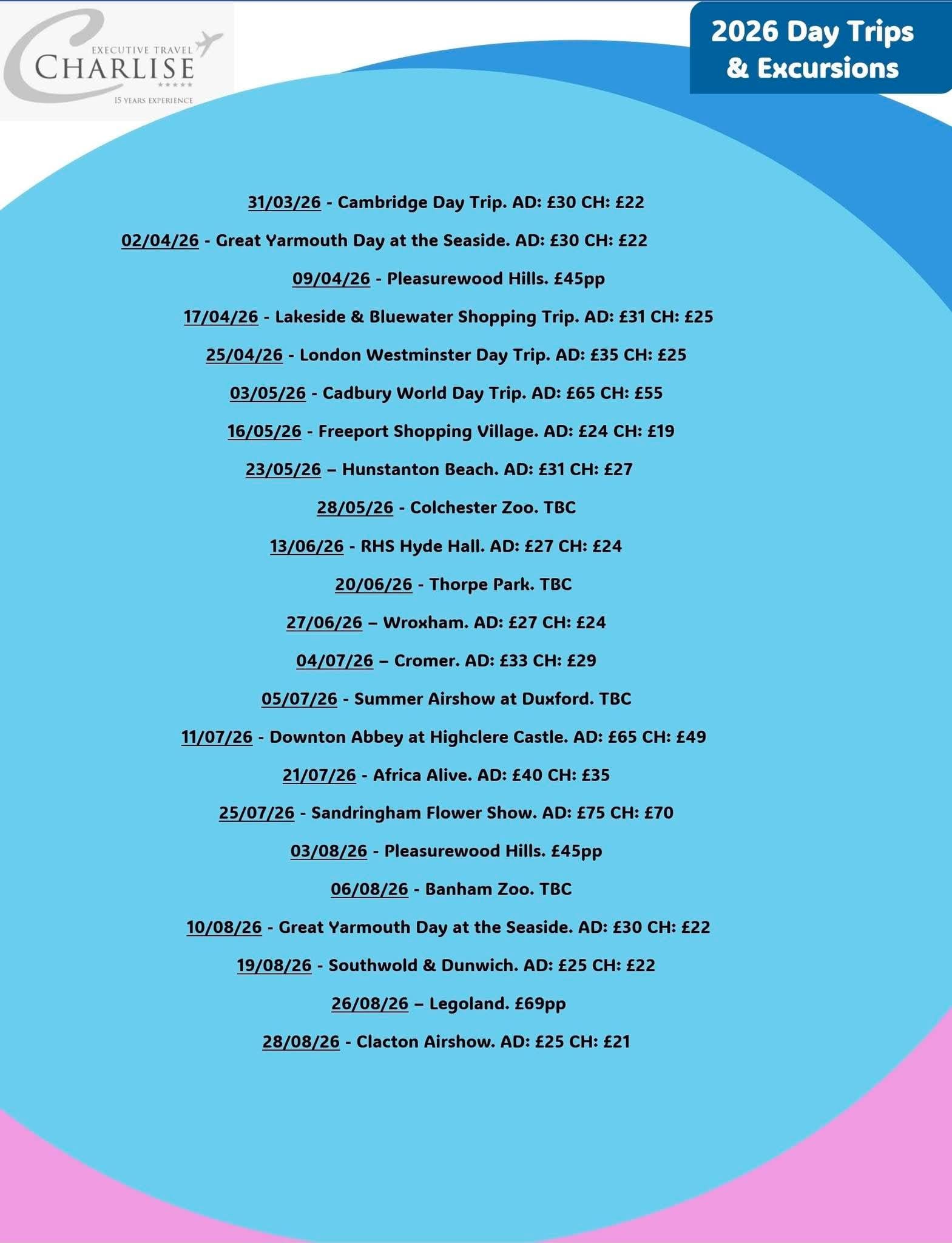 Join Charlise Executive Travel for a fantastic day trip to